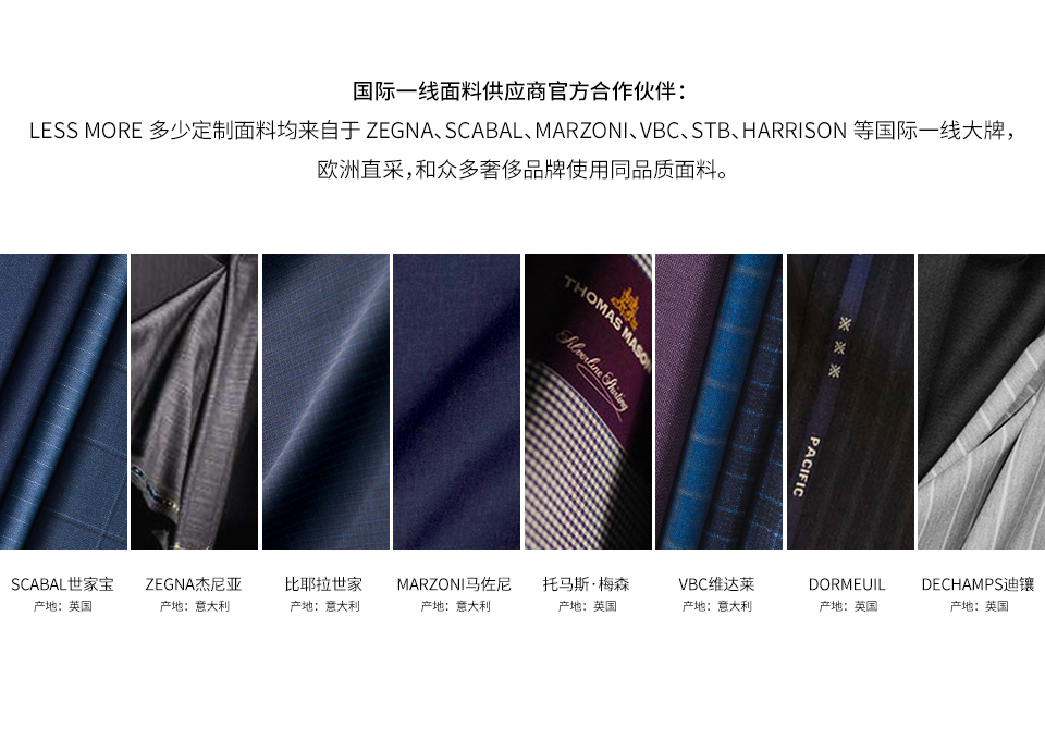 LESS MORE 多少定制是能夠提供男士全品類定制產(chǎn)品的生活方式品牌,對(duì)于中國(guó)商務(wù)男士來(lái)說(shuō),定制是對(duì)西裝最認(rèn)真的態(tài)度。